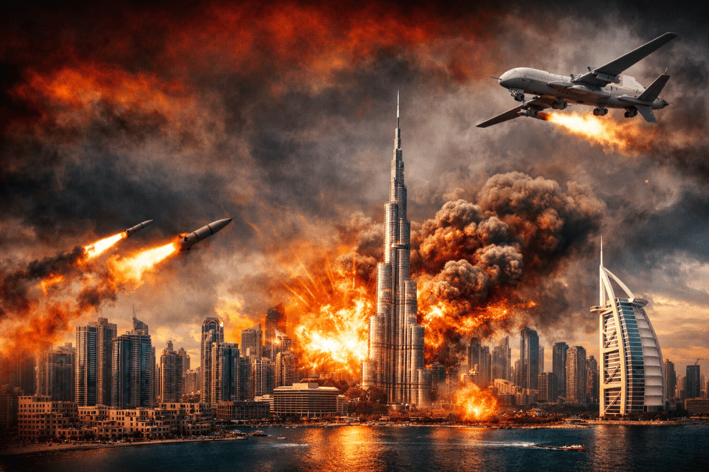 ईरान–इज़राइल के बीच बढ़ते तनाव ने पूरे मिडिल ईस्ट को अस्थिर बना दिया है, और इसका असर “अमीरों की नगरी” दुबई पर भी साफ दिखाई देने लगा है। दुबई, जो कि संयुक्त अरब अमीरात (UAE) का आर्थिक और पर्यटन केंद्र है, अब सीधे युद्ध क्षेत्र में तो नहीं है, लेकिन इसकी भौगोलिक स्थिति इसे जोखिम से पूरी तरह सुरक्षित भी नहीं बनाती। हाल ही में कई घटनाओं ने यह स्पष्ट किया है कि दुबई पूरी तरह सुरक्षित नहीं है, बल्कि एक “संभावित खतरे के क्षेत्र” में आ चुका है। उदाहरण के लिए, हाल के दिनों में दुबई में मिसाइल और ड्रोन हमलों के खतरे के कारण लोगों को मोबाइल पर इमरजेंसी अलर्ट भेजे गए, जिनमें सुरक्षित स्थानों पर जाने की सलाह दी गई । इतना ही नहीं, एक ड्रोन हमले से दुबई एयरपोर्ट के पास आग लगने की घटना भी सामने आई, जिससे कुछ समय के लिए फ्लाइट ऑपरेशन प्रभावित हुआ है।